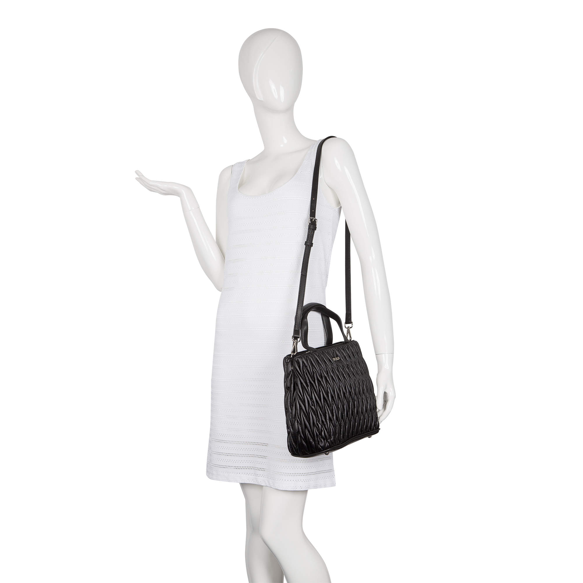 Стильная женская сумка актуальных расцветок фирмы Pola выполнена из экокожи и по всему периметру украшена рельефной отстрочкой.Основное отделение закрывается на металлическую молнию, внутри есть карман на молнии и открытый карман для мелочей. Сумку можно переносить с помощью двух ручек, высота которых составляет 12 см, а также на плече с помощью съёмного регулируемого ремня, длина которого сотавляет 118 см. Данная модель очень элегантна и великолепно подходит для ежедневного использования.
