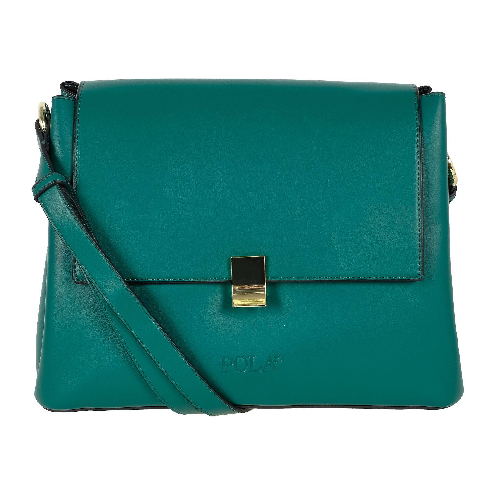 Стильная женская сумка фирмы Pola выполнена из экокожи и украшена платком. Основное отделение закрывается на клапан с помощью металлического замка-защелки и металлическую молнию. Внутри сумки есть маленький карман на молнии и один открытый. Сумка прекрасно подойдёт для повседневной носки. У сумки есть регулируемая ручка для переноски, высота которой составляет 45 см их можно украсить платком. Есть тонкий регулируемый ремешок длина которого- 121 см. Цвет фурнитуры-золото.