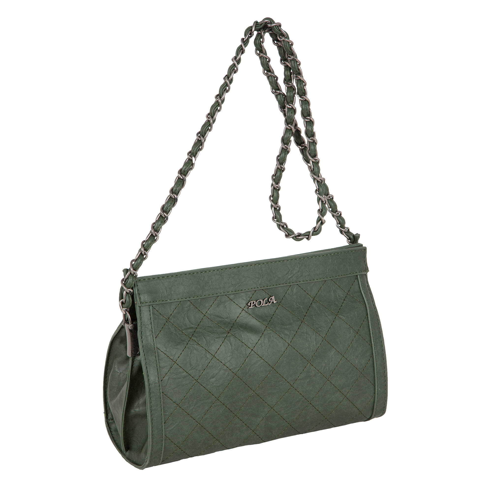 Миниатюрная сумка Pola выполнена из экокожи, закрывается на магнитные кнопки. Сумку можно носить в руках, а также на плече при помощи металлической цепочки. Данная модель великолепно подходит для повседневного использования, и для создания вечернего образа. Внутри сумка поделена на две части, один открытый карман, и один небольшой карман на молнии для мелочей. Максимальная высота несъёмного ремня – цепочки 47 см. Цвет фурнитуры - серебро.