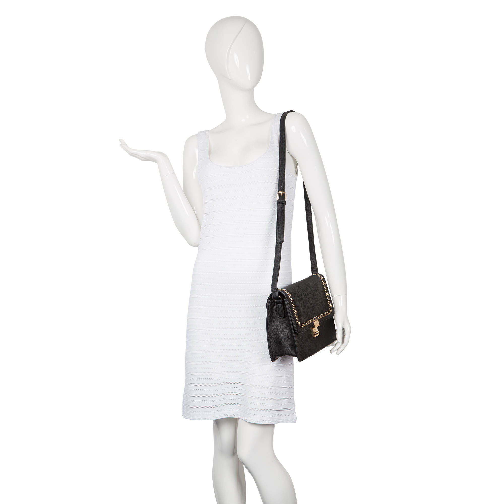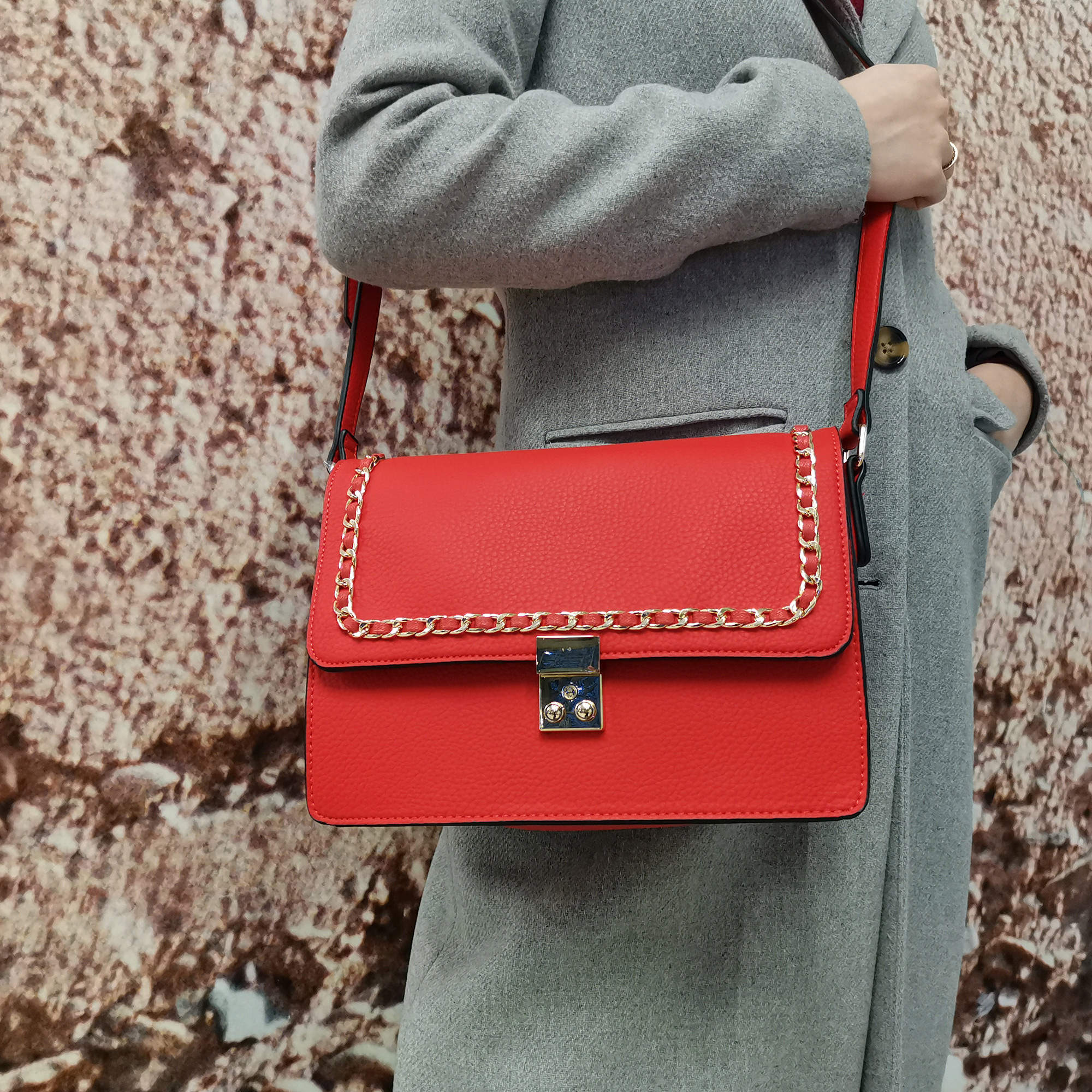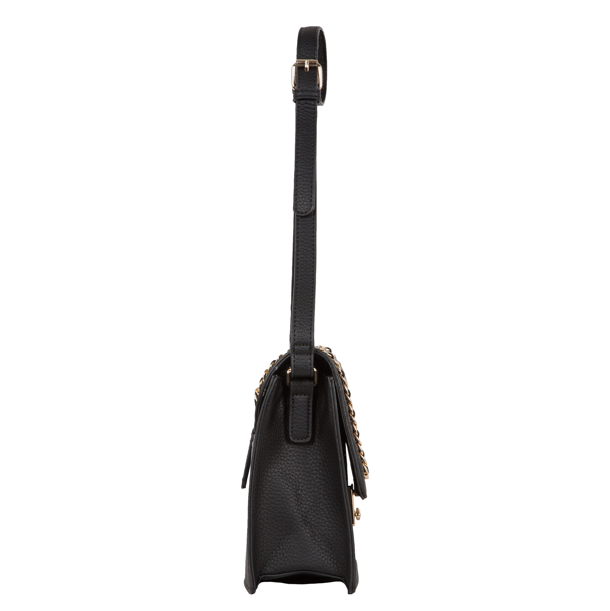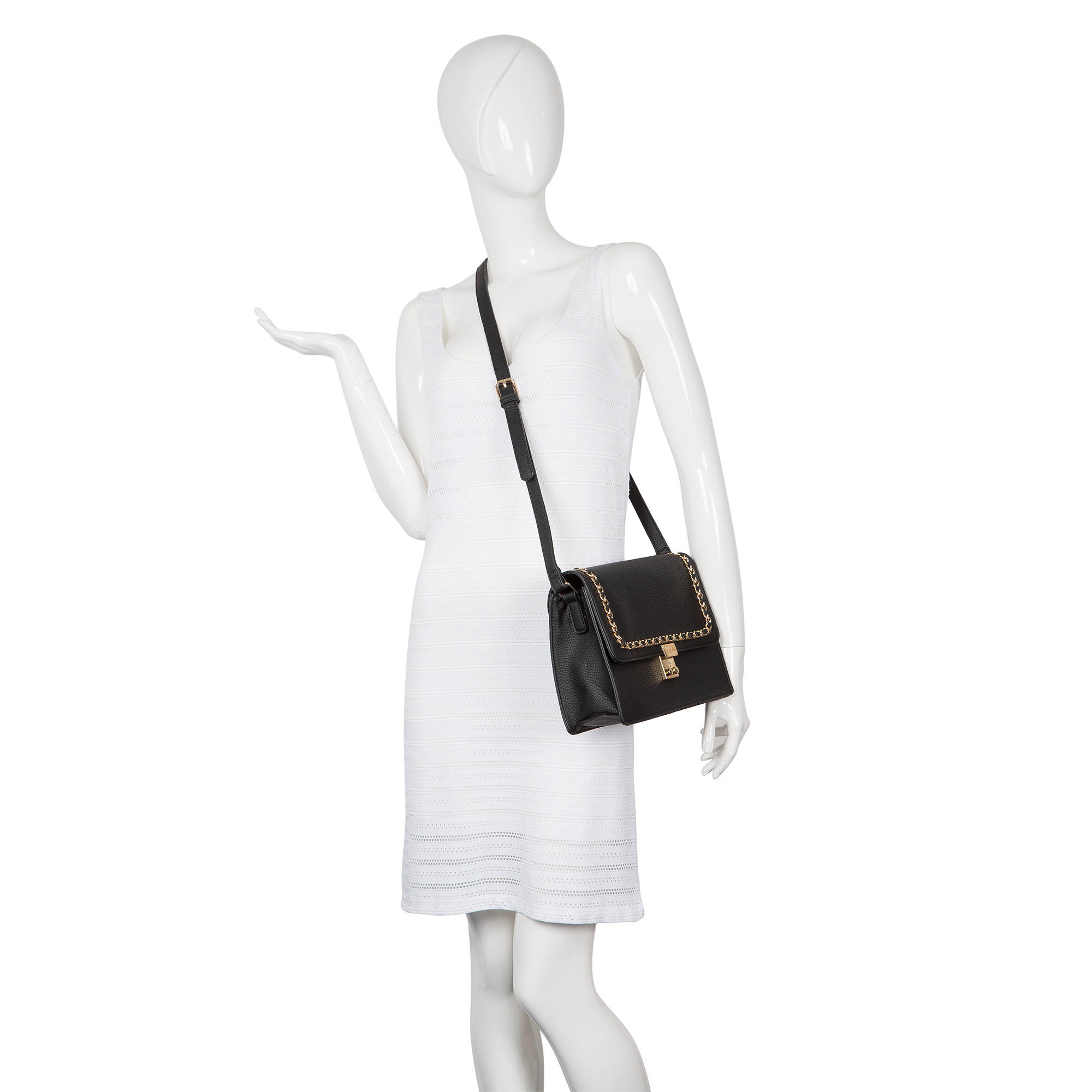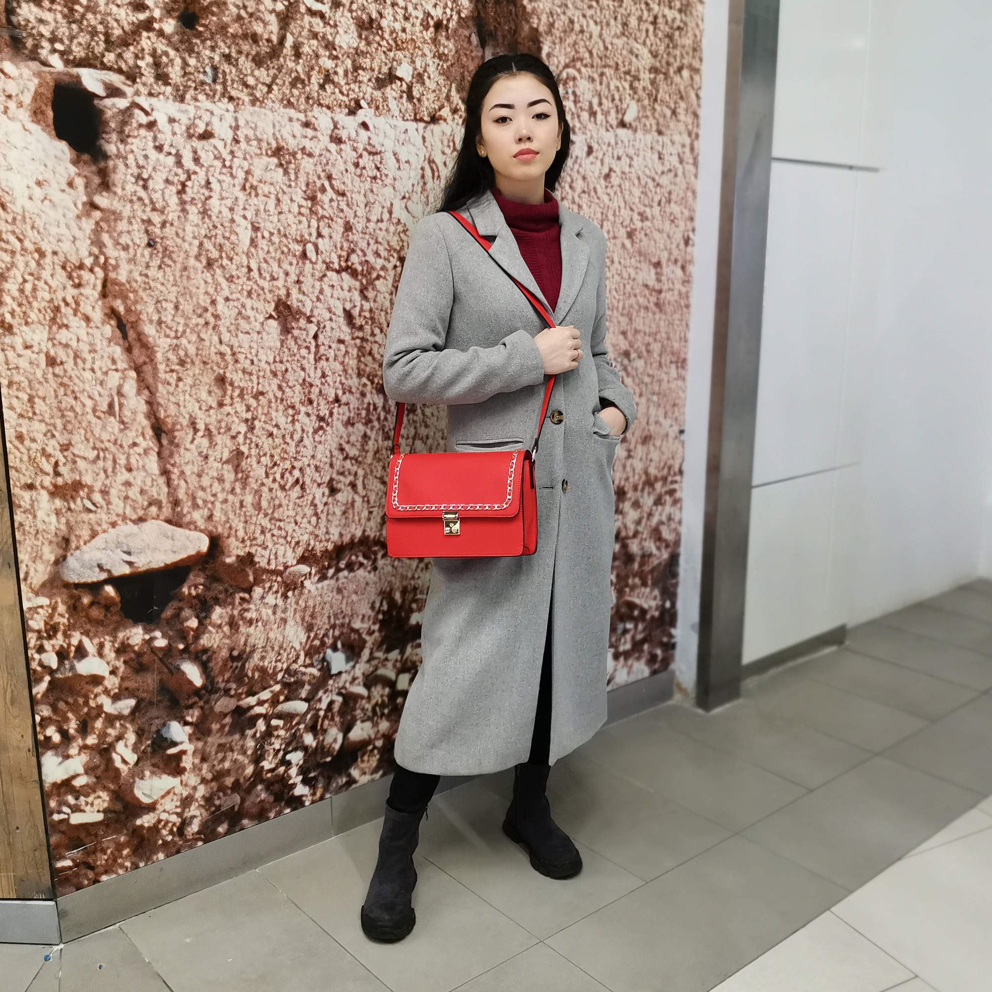 Стильная сумка Pola выполнена из экокожи, закрывается на молнию и на клапан с помощью металлического замка-защелки. Клапан украшен металлической цепью. Внутри основного отделения расположены карман на молнии и два открытых кармашка. Модель принадлежит к категории кросс-боди, сумка-аксессуар на длинном ремешке, которую можно носить или на плече, или (накрест) «пересекая тело». Данная особенность делает сумку просто незаменимой ,так как руки при этом остаются абсолютно свободными. Длина ремня составляет 115 см.