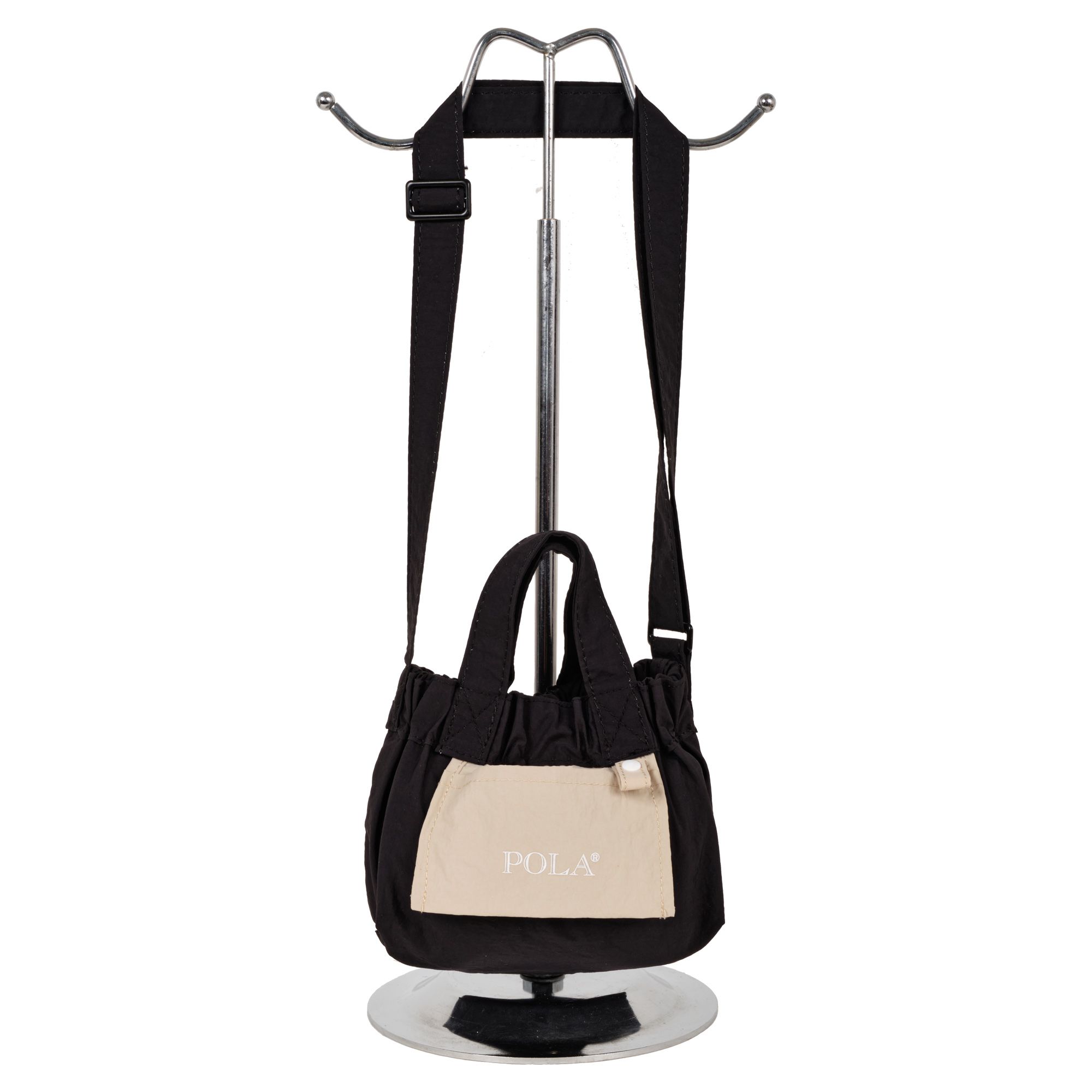 Сумка-шоппер фирмы POLA выполнена из текстиля. Основное отделение закрывается на металлическую кнопку. Внутри одно отделение. Спереди маленький карман для мелочей. Длина ручек 14 см. Сумку можно носить на плече за счет регулируемого ремня максимальная длина 97 см.