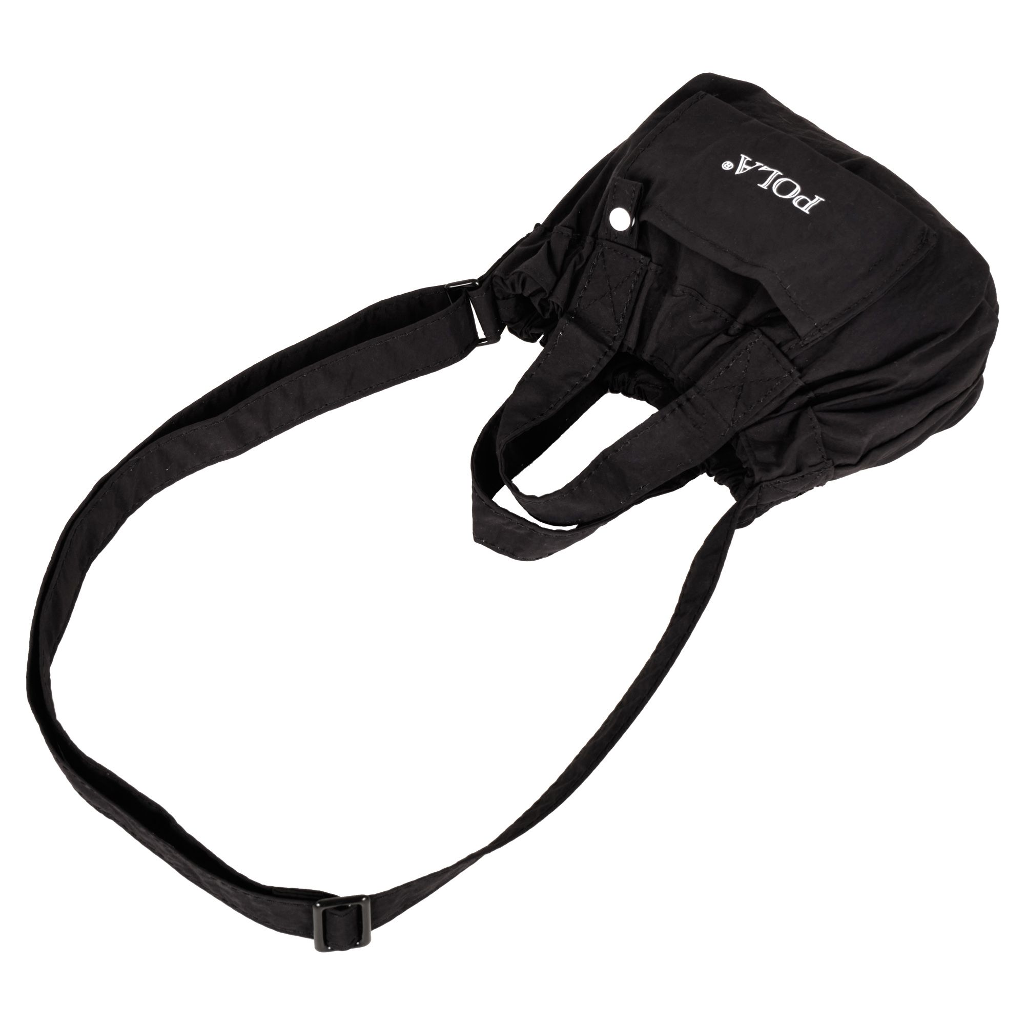 Сумка-шоппер фирмы  POLA выполнена из текстиля. Основное отделение закрывается на металлическую кнопку. Внутри одно отделение. Спереди маленький карман для мелочей. Длина ручек 14 см. Сумку можно носить на плече за счет регулируемого ремня максимальная длина 97 см.