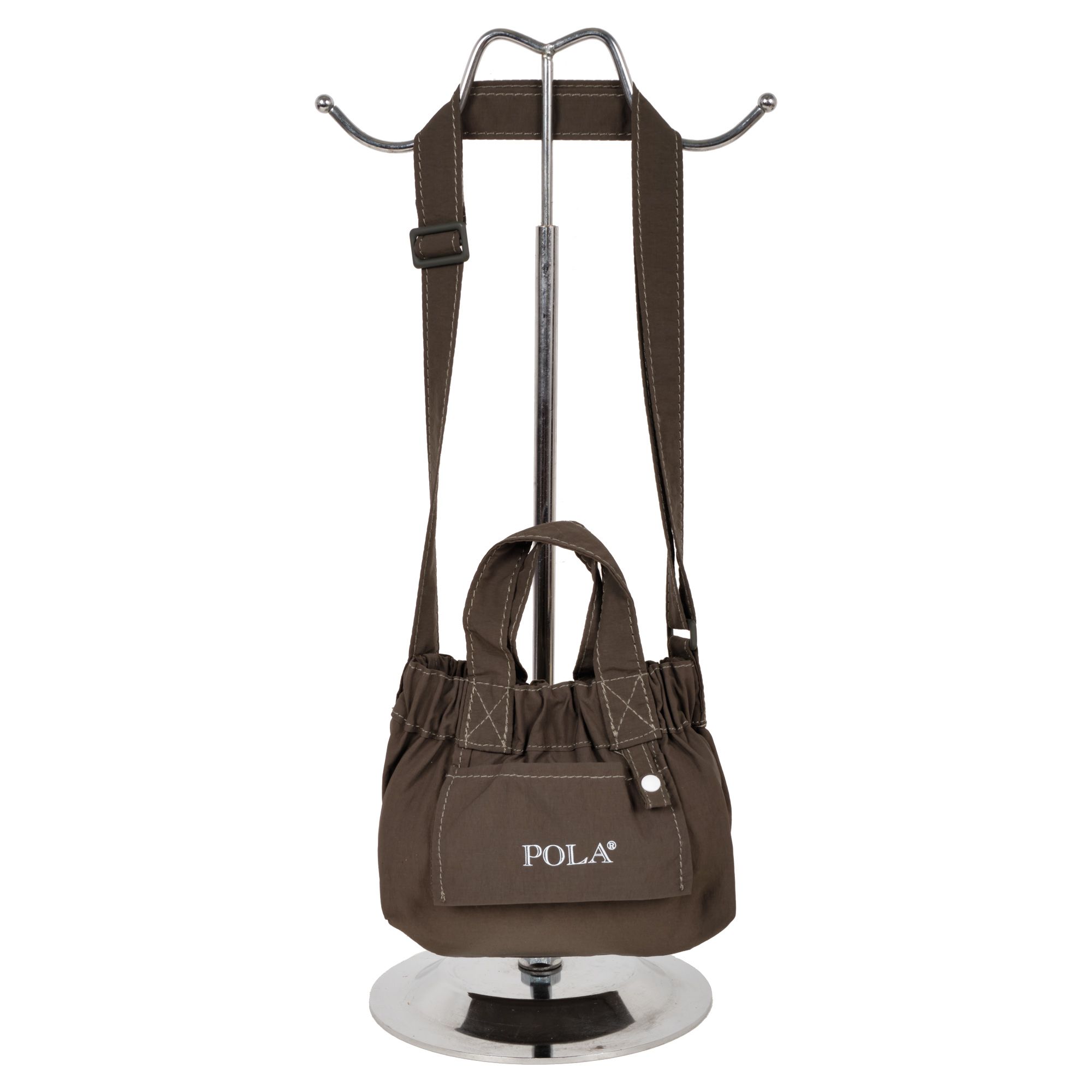 Сумка-шоппер фирмы  POLA выполнена из текстиля. Основное отделение закрывается на металлическую кнопку. Внутри одно отделение. Спереди маленький карман для мелочей. Длина ручек 14 см. Сумку можно носить на плече за счет регулируемого ремня максимальная длина 97 см.