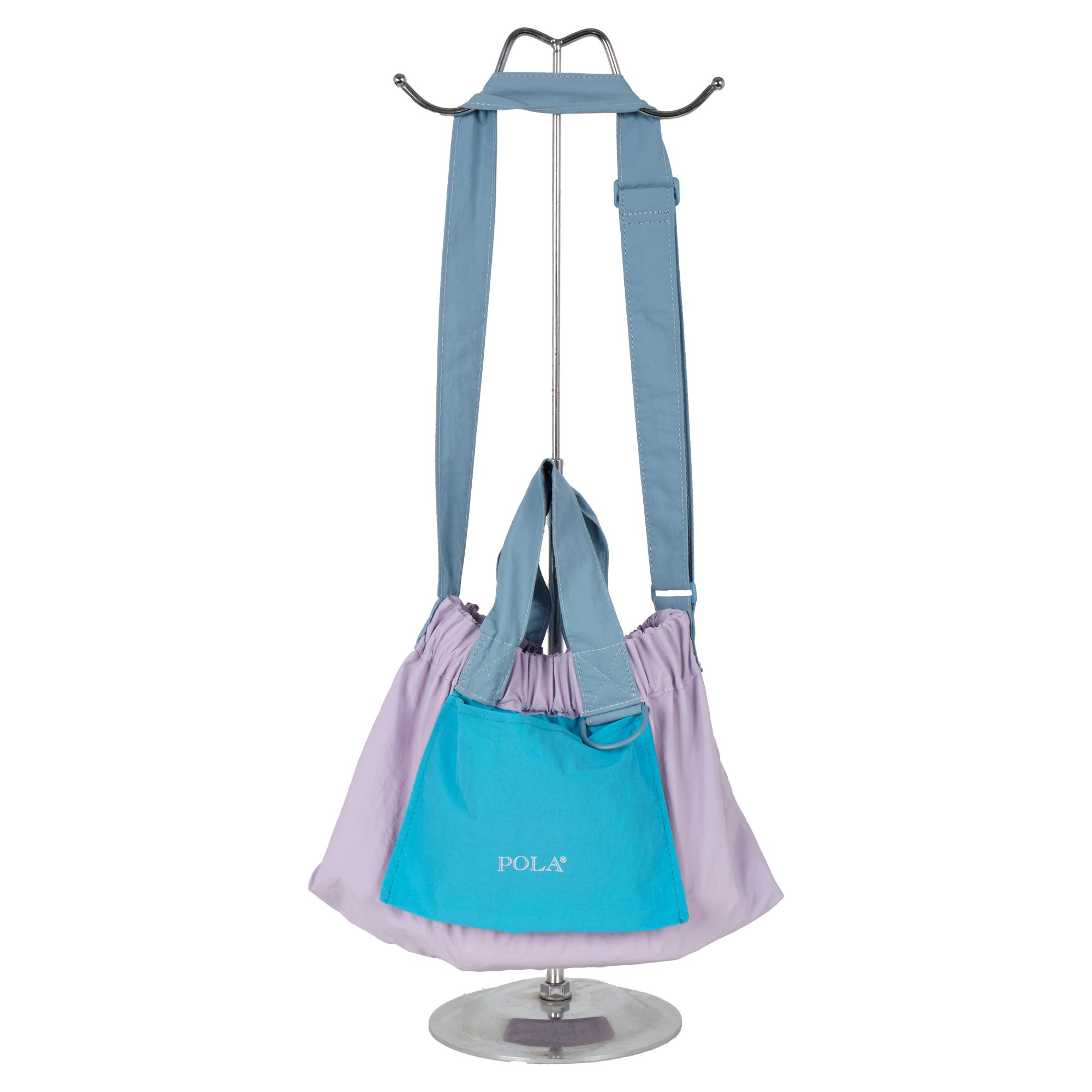 Сумка-шоппер фирмы  POLA выполнена из текстиля. Основное отделение закрывается на металлическую кнопку. Внутри одно отделение. Спереди маленький карман для мелочей. Длина ручек 14 см. Сумку можно носить на плече за счет регулируемого ремня.