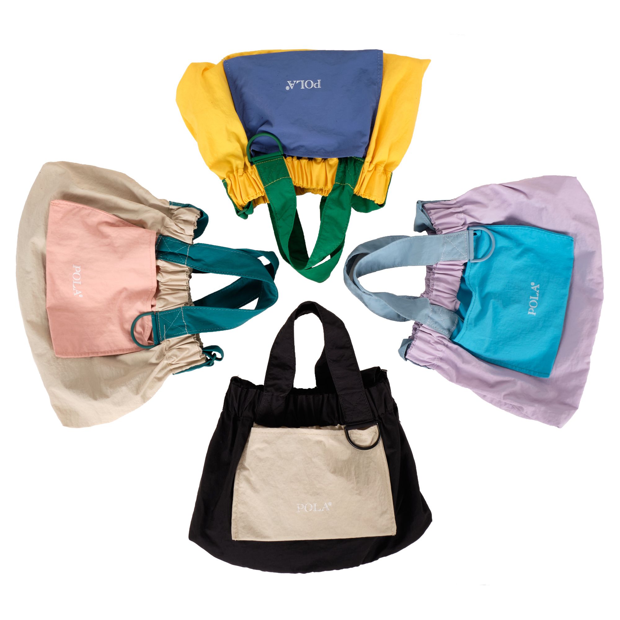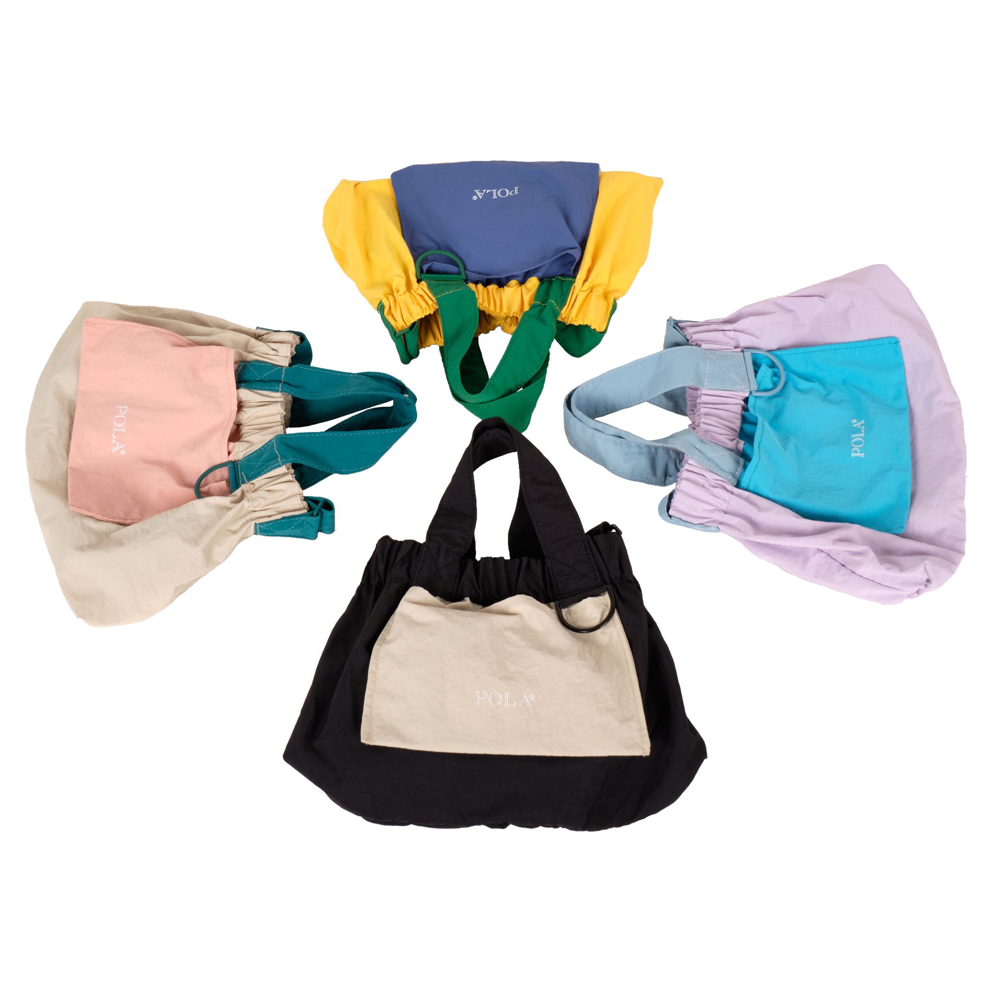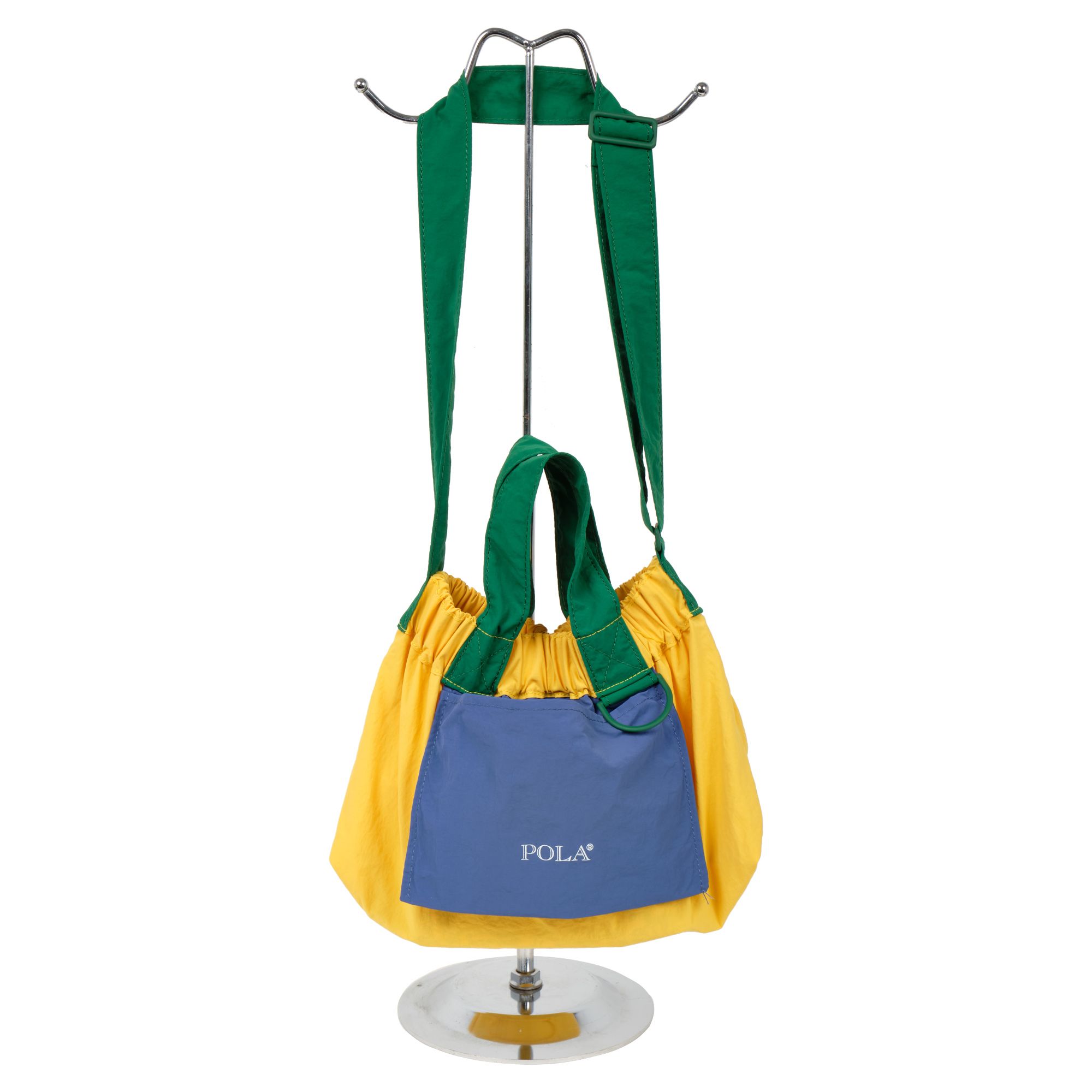 Сумка-шоппер фирмы  POLA выполнена из текстиля. Основное отделение закрывается на металлическую кнопку. Внутри одно отделение. Спереди маленький карман для мелочей. Длина ручек 14 см. Сумку можно носить на плече за счет регулируемого ремня.